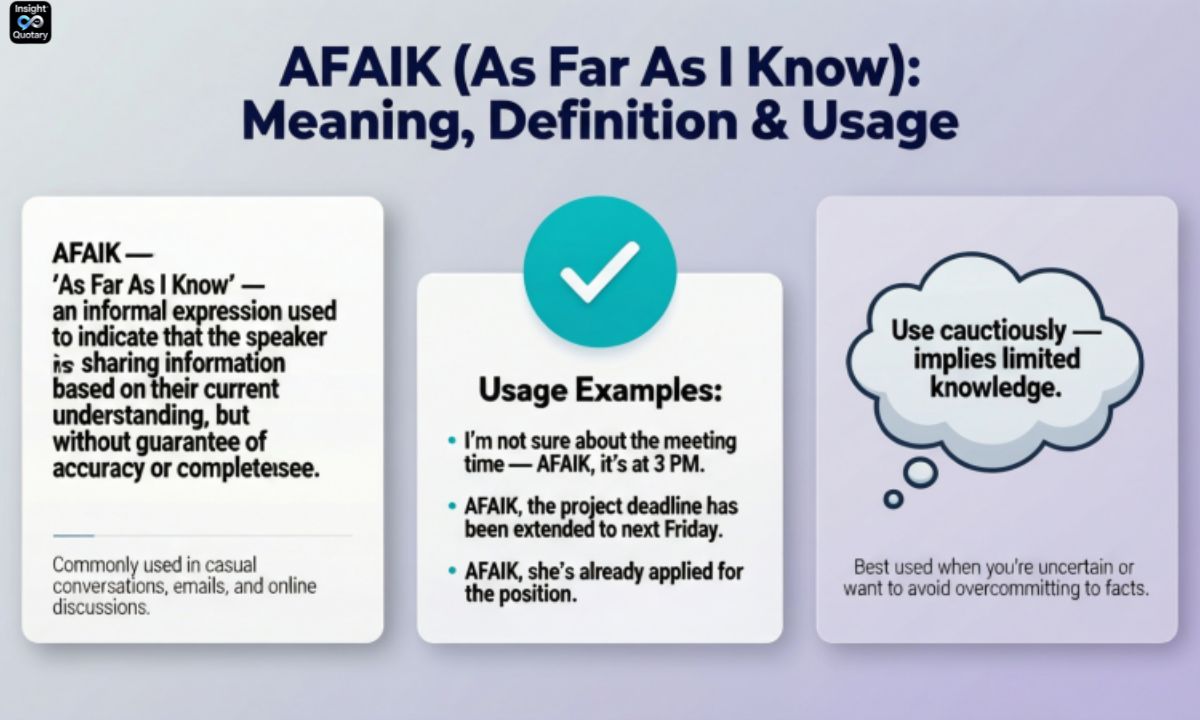 Understanding the AFAIK meaning is one thing, but knowing how to use it properly makes your messages clearer and more honest. This text chat abbreviation works best when you’re sharing information but want to acknowledge you might not know everything.